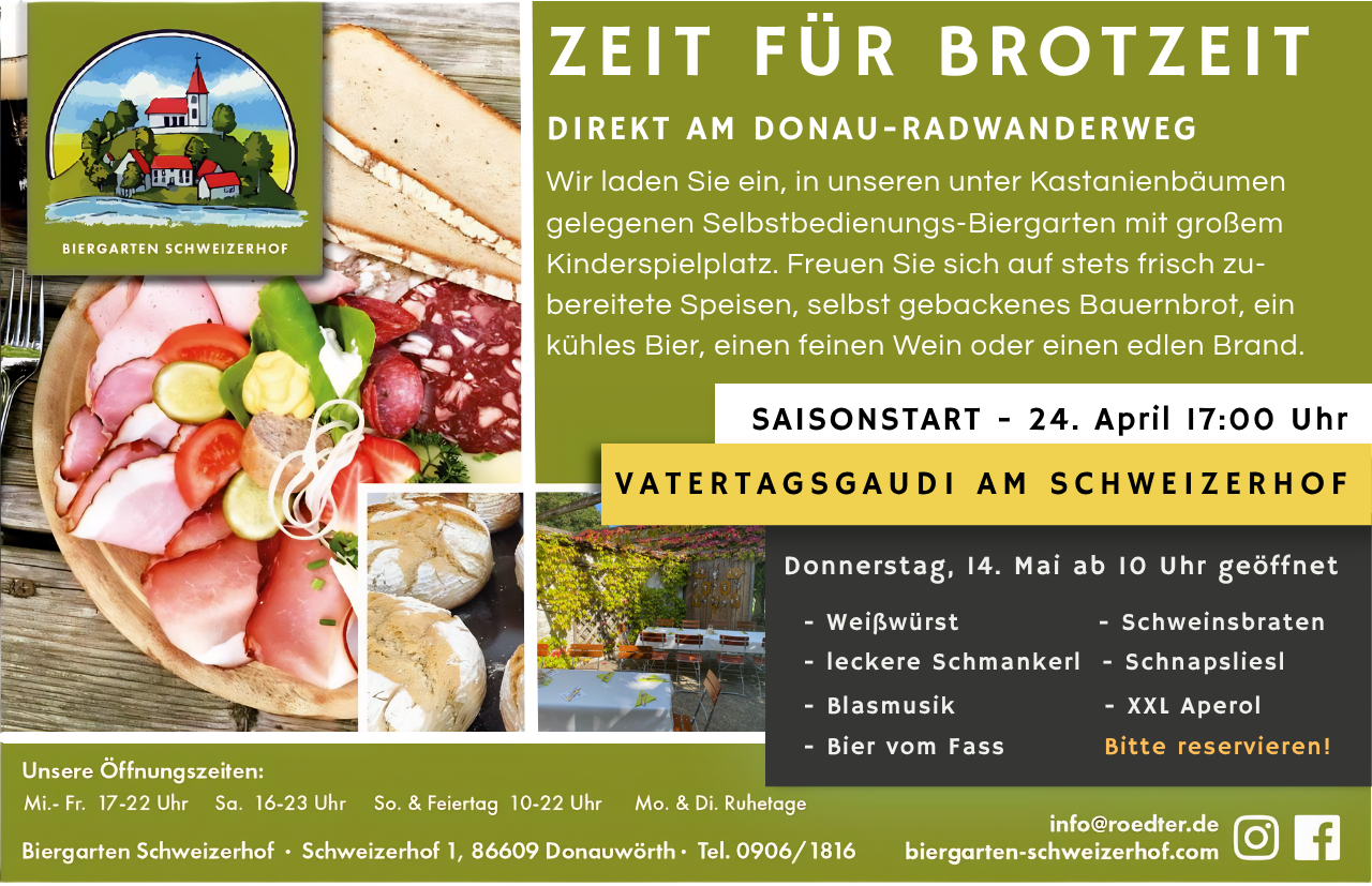 Steht für regionale Spitzenqualität. Wer zu uns in den Biergarten kommt soll sich wohlfühlen. Unser starkes und engagiertes Team arbeitet gerne und mit viel Freude im Biergarten Schweizerhof und versucht immer für zufriedene Gäste zu sorgen.